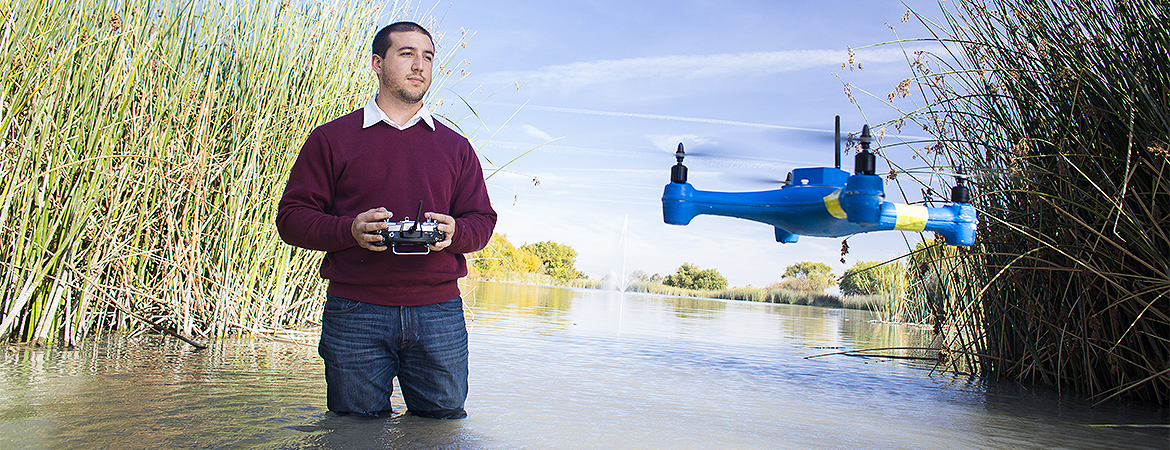 Image: Text: This multi-disciplinary group explores the use of unmanned aerial systems for remote sensing, agriculture, renewable energy, and more. Link: http://mechatronics.ucmerced.edu/Sort Order: 4